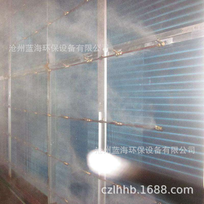 當水霧顆粒與塵埃顆粒直徑大小相近時(shí),行程的吸附過(guò)濾、凝結的幾率 ,那么只要產(chǎn)生于粉塵顆粒大小相當的微米級水霧顆粒使其與之吸附,相互粘結,聚集增大并在自身重力的作用下沉降, 可達到噴淋降塵的目的,當水霧形成時(shí)產(chǎn)生負離子,粉塵中大量的正離子與水霧中的負離子結合,從而迅速降塵,水霧與干燥的粉塵解除,增加了空氣的濕度,同時(shí)吸收大量空氣潛熱,從而起到良好的降溫作用。